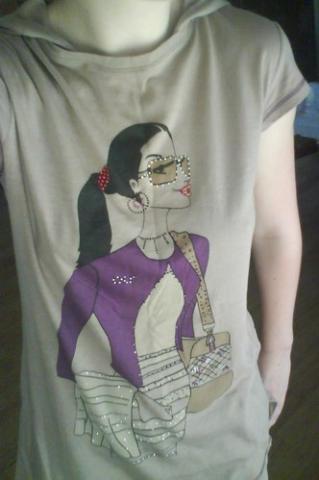Maikutė su nupiešta mergina, maikutė visai nauja. su kapišonu . M dydis