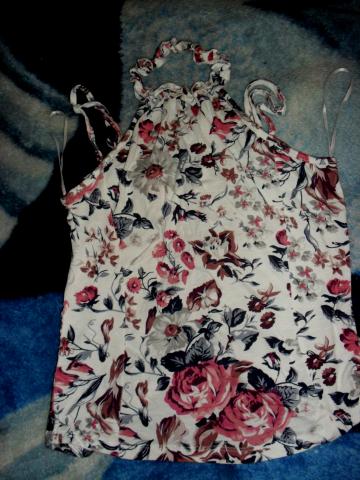 Visiškai nauja, per kaklą bei yra betnešėlės, gale susivarsto šniūreliu :) Dydis XS/S. Madingų spalvų, įdomaus kirpimo.Mainau arba parduodu už 25Lt.