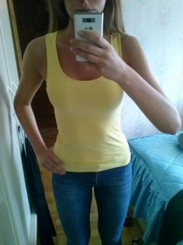 naujai pasiūta siuvėjos, šviesiai geltona, trikotažinė, labai maloni bliuskutė, už siuntimą būtų +5 lt tiktų ir stambesnioms, nes medžiaga tamposi
