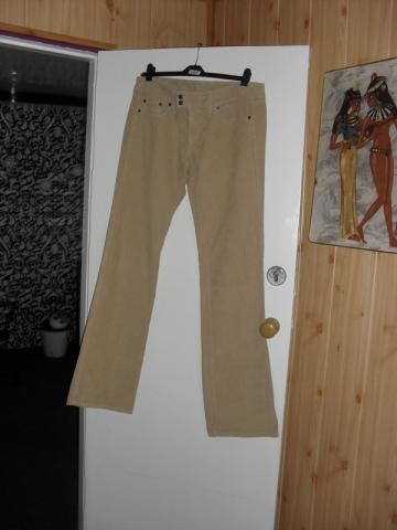 del konkretesnes info/dydziu teiraukites :) 1- dzinsiniai bridziukai 2- velvetines smelio spalvos kelnes (kaip naujos) 3/4- platus dirzas (defektas matosi 7oje foto, taciau uzsidejus dirza iplysimo nesimato)
