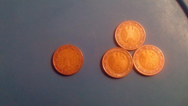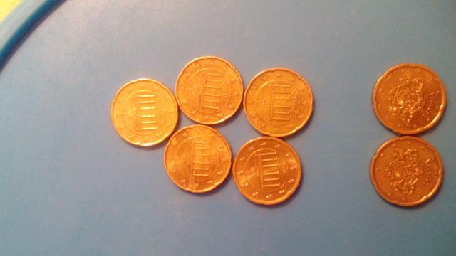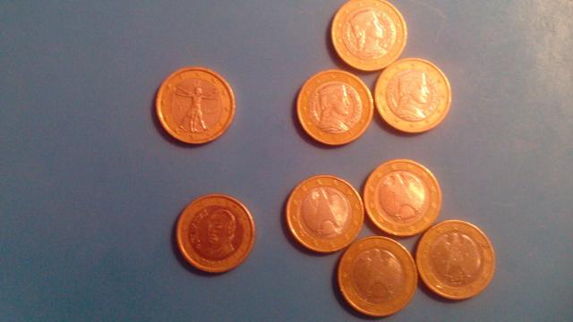 Turiu atliekamas šių nominalų euro monetas: 2 Vokietijos eurai 2 Prancūzijos eurai 1 Vokietijos euras 1 Latvijos euras 1 Italijos euras 1 Ispanijos euras 0,2 Latvijos euro centai 0,2 Vokietijos euro centai 0,05 Vokietijos euro centai 0,01 Vokietijos euro centai