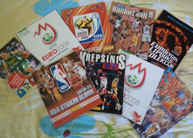 2002 world cup albumo lipdukai, euro 2008 albumo lipdukai, 99-00 nba albumo lipdukai, 06-07 eurolygos albumo lipdukai, Pekino 2008 albumo lipdukai, medaliai iš IKI kolekcijos, nba 2010-11 albumo lipdukai