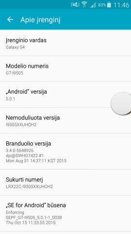 Telefonas yra tvarkingas , android versija 5.0.1 ( šitam telefonui naujausia versija ) telefonas yra kitoks negu paprastas Samsung Galaxy S4 * Kamera 13mgpx * Priekinė kamera 2mgpx * 2GB ram * Vidinė atmintis 16GB ( prieinama apie 10GB ) * Komplektacija : Telefonas ir pakrovėjas . * Būkle įvertinčiau 9/10 Atrašau į laiškus gmaile jdm.sean@gmail.com