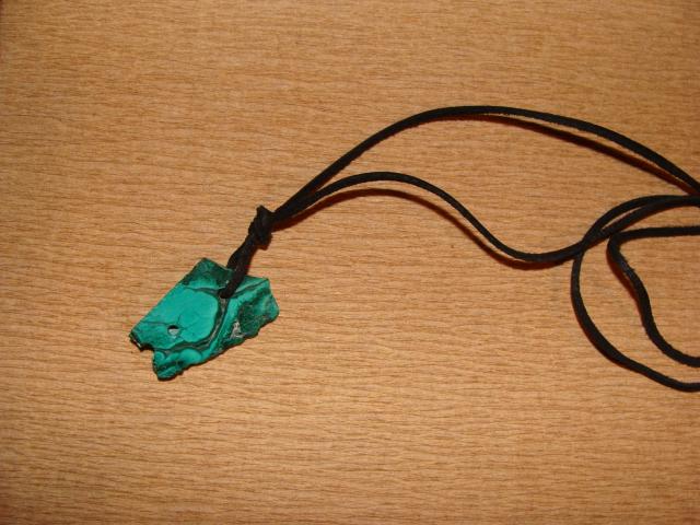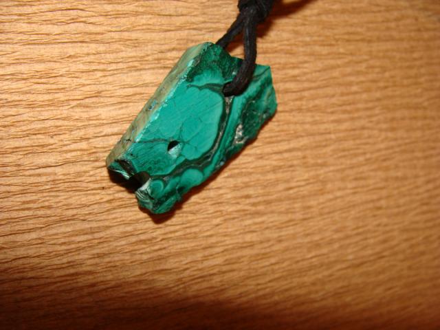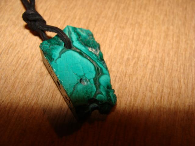 Malachito akmuo, su skylemis praverti grandinelei ar odai:) Malachitas, kaip brangakmenis naudojamas labai seniai. Egiptiečiai iš jo gamindavo amuletus, kamėjas, graikai ir romėnai – dekoratyvinius dirbinius. Akmeniui būdingi įvairūs šviesesni ir tamsesni raštai, primena augmenijos pasaulį. Tikima, kad akmuo ištraukia iš mūsų neigiamą energiją bei padeda suvokti priežastis, kurios sukėlė šias neigiamas vibracijas. Padeda gydyti skrandžio, kasos ir blužnies ligas, stiprina regėjimą, gydo dieglius, įvairius