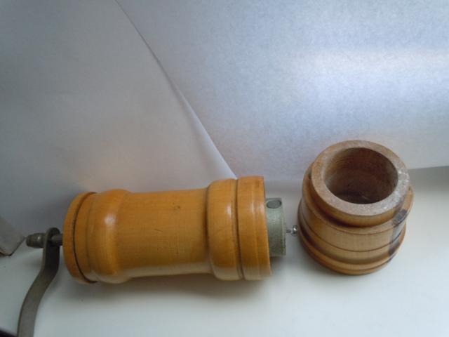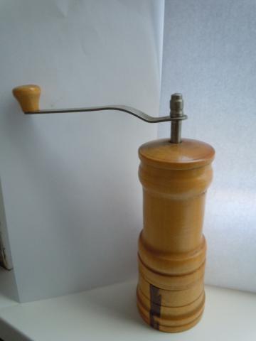 Medinis, senų laikų, rankinis malimo malūnėlis. Aukštis - 21 cm