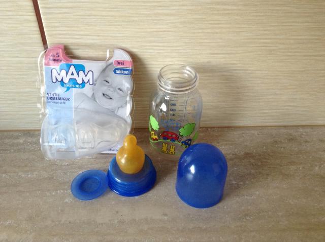 120ml talpos MAM spalvingas buteliukas + 2 nauji silikoniniai žindukai.