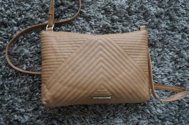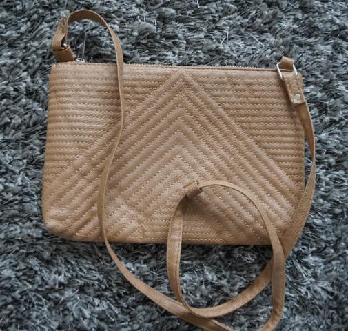 Kūno spalvos elegantiška Mango rankinė. Galima nešioti paprastai arba per petį. Išmatavimai: ilgis 26 cm, aukstis 18 cm.