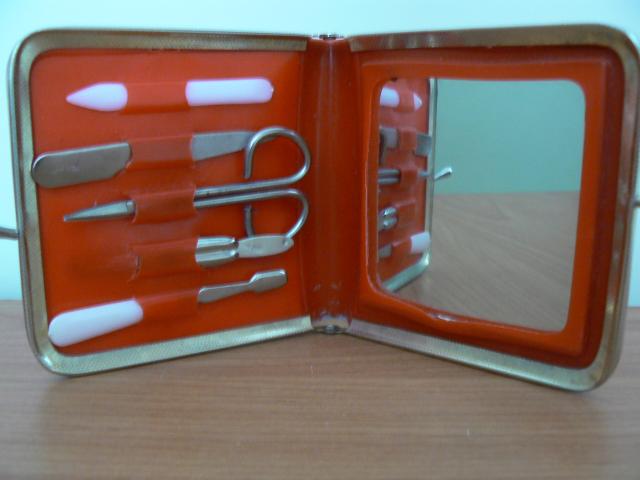 Nauja, iš tikrųjų - ryškiai auksinės spalvos, 10x10,5 cm. Dėmesio vertas dėklas, ne įrankiai.