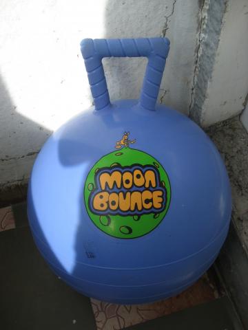 Mankštos kamuolys "Moon Bounce", vaikams gal iki kokių 7 metų, priklausomai nuo ūgio. Juo galima šokinėti, yra rankena įsitverti.