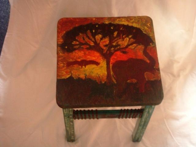 tikrai idejau labai daug darbo ,piesiau su aliejiniais dazais, kojos su akriliniais ir apklijavau odiniais sniureliais