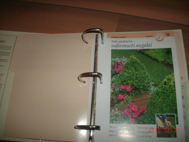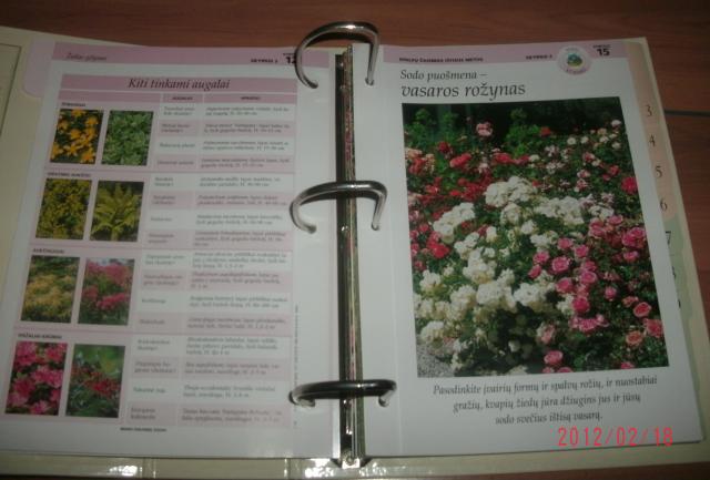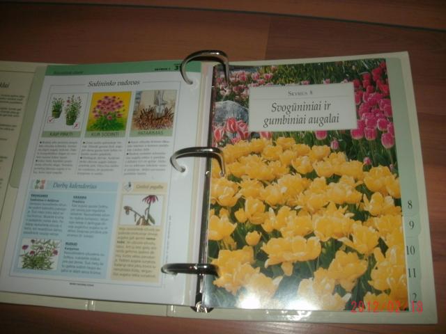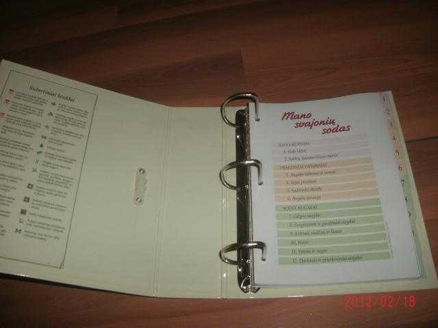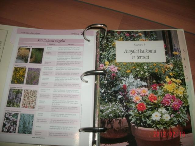 12 skirtukų, 36 kortelės apie augalus, jų priežiūrą ir pan.