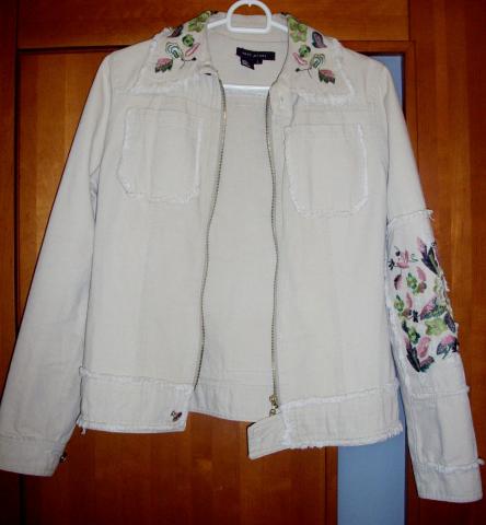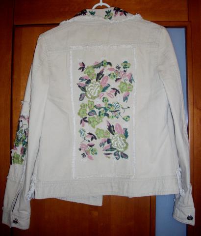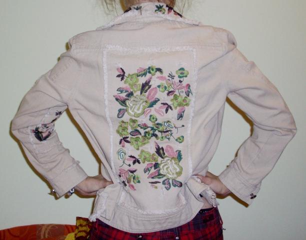 smėlinio džinso švarkas su siuvinėtomis gėlėmis