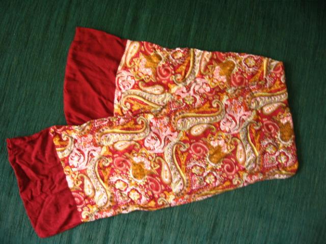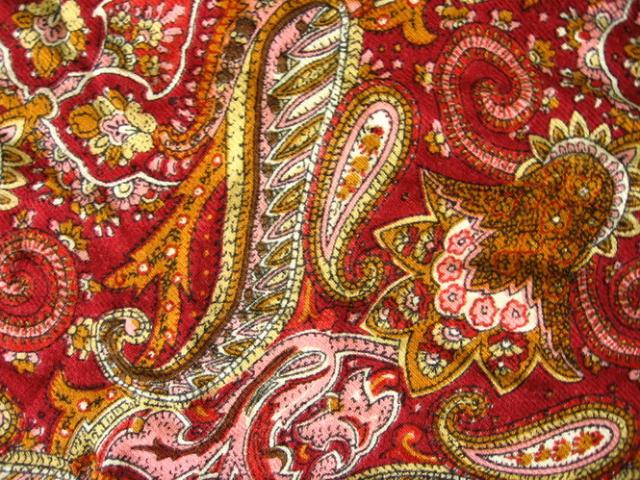 Be galo malonios medžiagos, senoviškų raštų. Nuotraukose atrodo labiau gelsvas nei yra iš tiesų (dominuoja bordo). ~120x25 cm