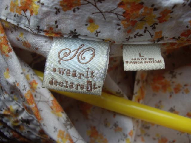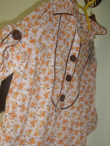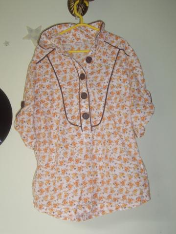 Šviesūs marškiniai su oranžinėm gėlytėm.