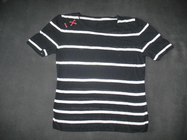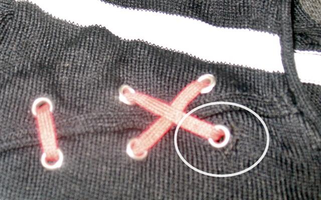 Labai labai tamsios mėlynos spalvos, beveik juodos. nuotraukoj teko koreguot kontrastą, todėl atrodo lyg persišviestų, bet iš tiesų nepersimato. Ten, kur foto apibraukta, blogai užspausta kniedė, todėl buvo pradėję irti. Stengiaus kuo gražiau sutvarkyt ir kai nešiojau, bent jau man, nekrito į akis.