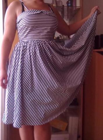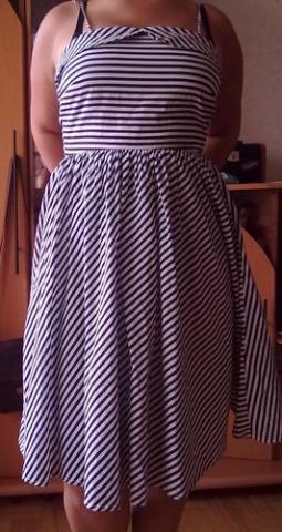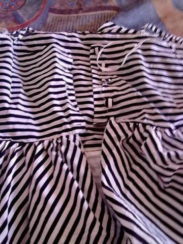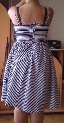 Lengvo audinio, puikiai tiks vasarai. Su baltu medvilniniu pasijoniu. Atrodo labai dailiai ant kūno. Užsisega tokia pat medžiaga dengtomis sagutėmis, bei užtrauktuku.