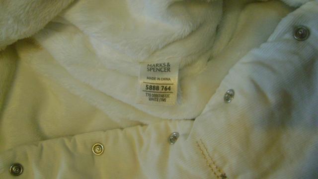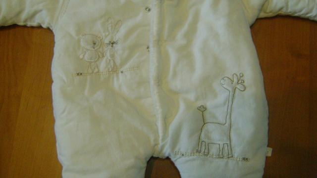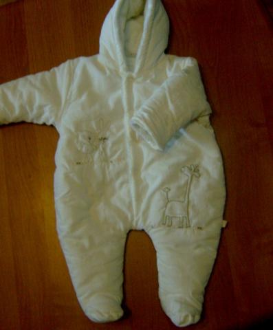 Marks & Spenser kombinezonas naujagimiui (0-3 men.). Smulkus velvetas, dirbt. kailis