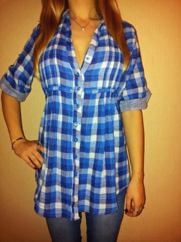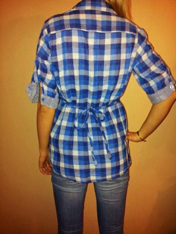 S/M. Rankoves ilgis 31 cm.plotis 14 cm. Petys 11 cm. Ilgis 63 cm. Ties krutine 48 cm. Sudėtis medvilne Spalva mėlyna/indigo, balta . Look. S/M