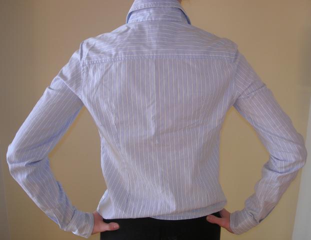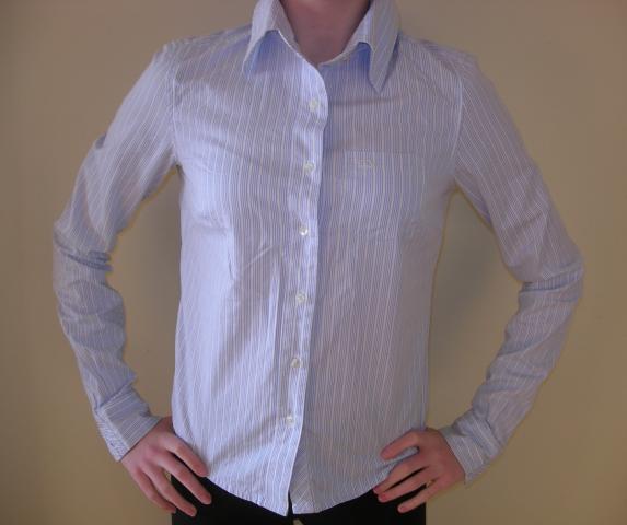 Balti marskiniai su sagom , siek tiek dryzuoti.