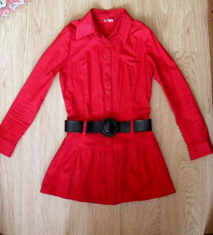 Labai gražus rūbelis, tarsi tokia suknutė - marškinukai. Malonios medžiagos, s dydžio. Puikiai tiks prie tympų, džinsų ar kitų kelnių. Parduodu/mainau be diržo. Palaidinėje nuo diržo liko neryškūs kontūrai, bet kai įdedat dirželį to nesimato.