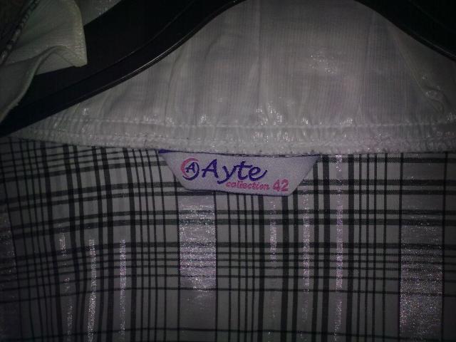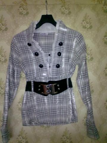 Grazus marskinukai, tinka prie sijonuko ir prie dzinsiuku, pora kartu uzsideti :) galima uzsisegti dirziuka po krutine, nes yra tam pritaikytos vietos :))raso 42 dydis, bet tinka tiek S tiek M nes tamposi :)