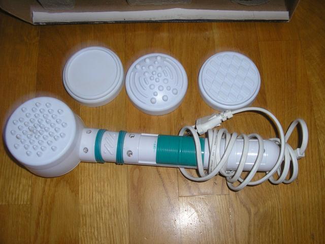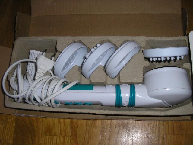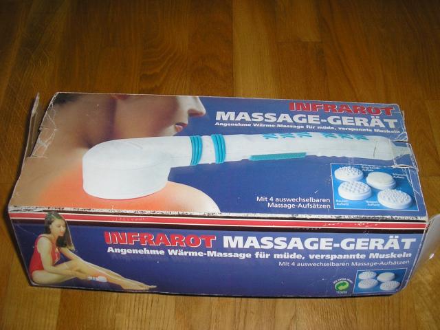 Masazuoklis "Infrarot massage-gerat" vokiskas. Su infraraudonaisiais spinduliais, yra 4 skirtingi antgaliai. Galima sakyti naujas, tik dezute suplysusi.