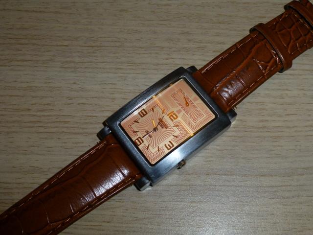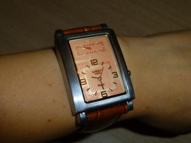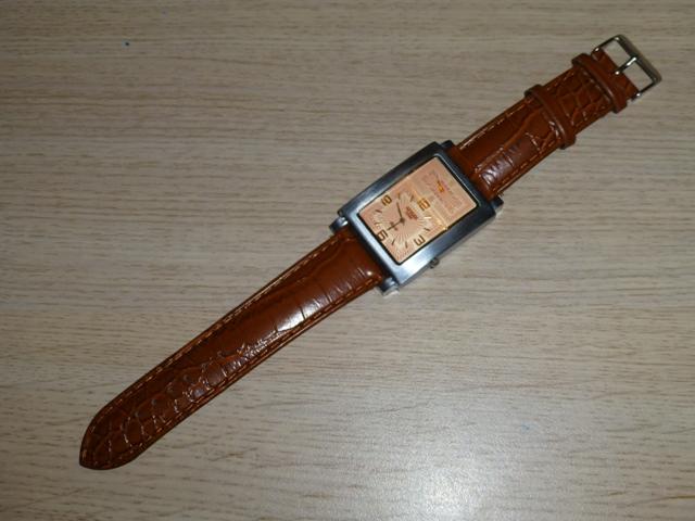 Labai mažai nešiotas masyvus rankinis laikrodis, ruda apyranke.