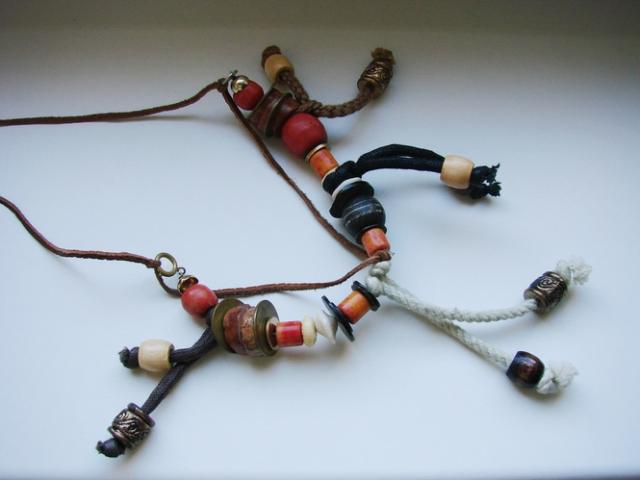 Odinis dirželis, natūralūs karoliai, užsiriša.