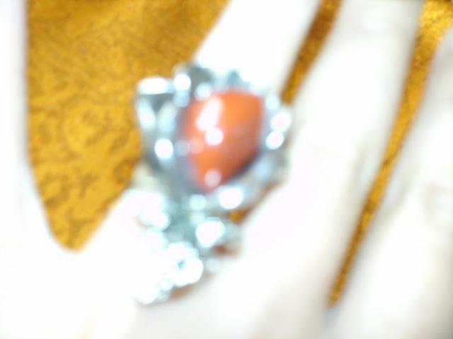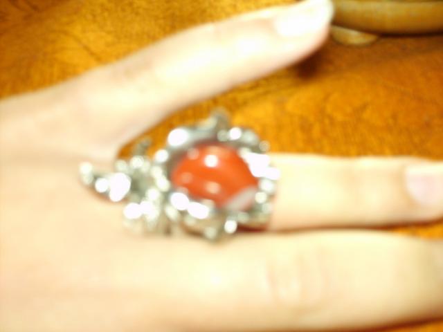 masyvus rozes formos ziedas su raudonu akmenuku