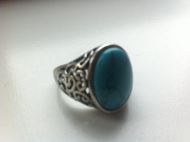 naujas masyvus žiedas su stambiu turkio spalvos akmeniu