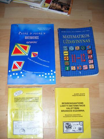 Puikios knygos matematikos egzaminui pasiruošti. "Ruoš ir ruoškis matematikos egzaminui" - nauja, nenaudota, 10 lt. uždavinynas - vidutinės būklės - 5 lt; geltonos knygutės po 6 lt.