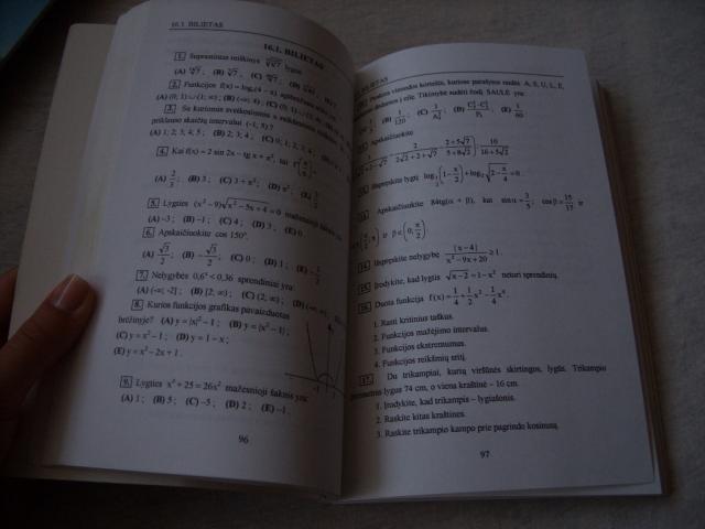 Autoriai: Vaidotas Mockus, Algidė Jocaitė ir kiti. Apsitrynęs viršelis, o pati knygutė neprirašyta. Leidimo metai 1998, 195psl. 27 bilietai su dviem variantais (tad galima teigti, kad bilietų yra 54). Su atsakymais! Pravers tiems, kas rimtai ruošiasi matematikos egzaminui :)