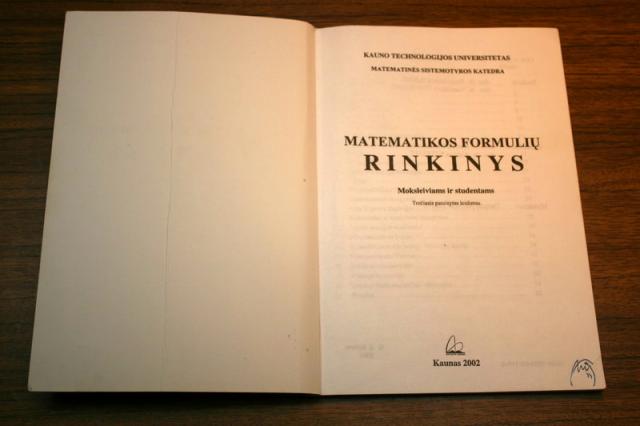 Matematikos formulių rinkinys moksleiviams ir studentams. Išleista KTU, labai labai naudinga knygelė besimokinantiems. Visos reikalingiausios formulės surinktos ir sudėtos patogiai