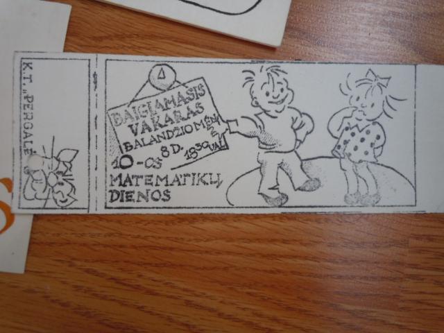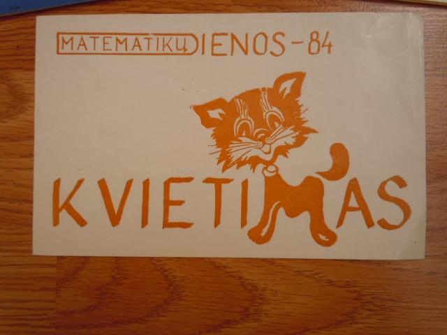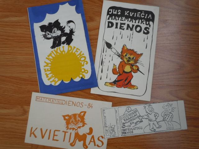 Matematikų dienų 4 vnt -kvietimai. 2 foto - 1983 m, 3 foto -1984 m, 4 foto - 1985 m, 5 foto - 1986 m.Yra dar 1978 ir 1979 metu