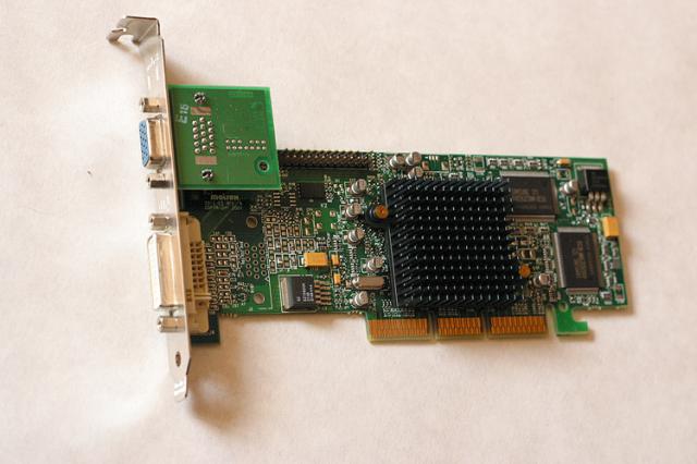 Puikiai veikianti Matrox G550 vaizdo plokste. Kiek atminties - nepamenu:(