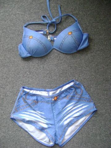 Dėvėtas 1 kartą, džinso spalvos, šortukai labai gražiai priglunda, dydis maždaug 36, viršutinės dalies apie 75B, bet nesu įsitikinus