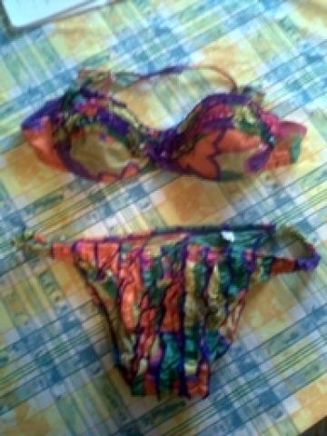 Apačia kažkur M, viršus mažas, XS-S, su gražiais kvarbatkais, petnešėlės biškį pasitrynę