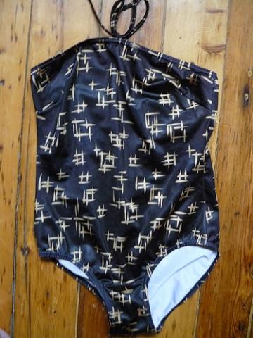 Vientisas maudymukas, galima susirišti virvele ant kaklo, galima nesirišti - laikosi:)