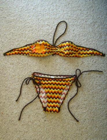 Gražus, smagus maudymukas - gaila išaugtas. Liemenėlė be pakietinimų. Jei susidomėsit - parašysiu išmatavimus. Pinigai arba kitas maudymukas kuris man patiks. :)