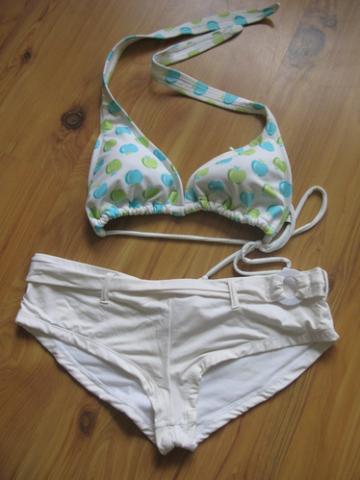 kelnaitės turbūt būtų M/L dydžio, nors man ir ant S laikos, bet ant didesnio užkapalio gražiau atrodytų:D viršus L, tai nežinau kokiais B/C krūtinei gal, gal net ; D nes man ant A tai labai didelis:dd šiaip beveik nenešiotas, baltas :}