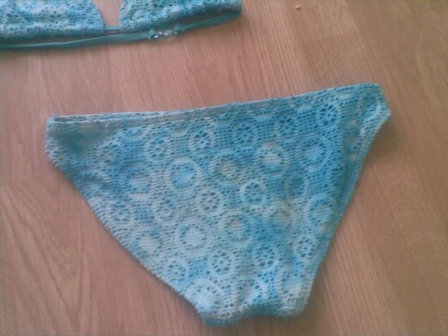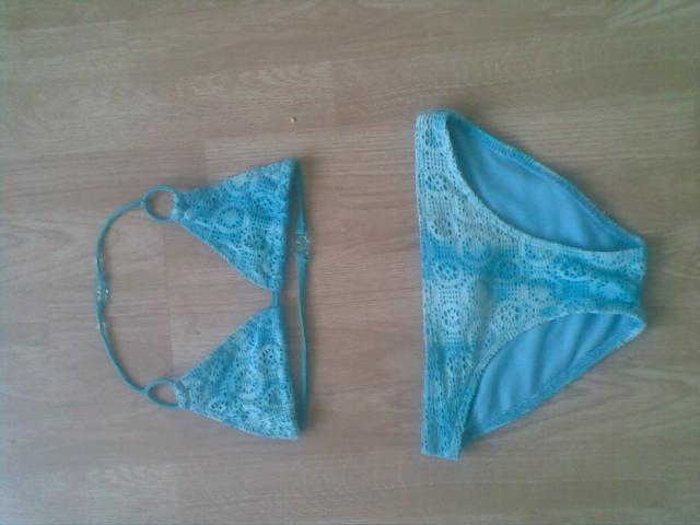 dydziukas S/M, 38tiks jei 36 didesniam uzpakaliukui, nesiociau bet gaila neturiu tokiu apvalumu auksciau kad dailiai atrodytu :)) nenaujas, bet l. geros bukles. spalva ryski sviesiai melyna :)