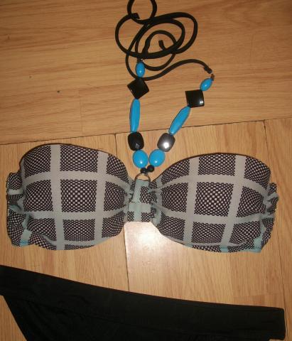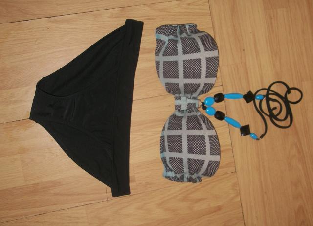 Puikiai atrodantis, patogus, stilingas maudymukas, yra dedami pakietinimai. Vienintelis defektas tas,kad nusidažė iš kitos pusės rausva spalva, nešiojant nesimato. Dydžiui kažkur S/M. Jei,kas domina-klauskite:)