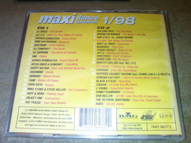 maxi dance sensation 1 / 98 2cd, tracklistai nuotraukose.