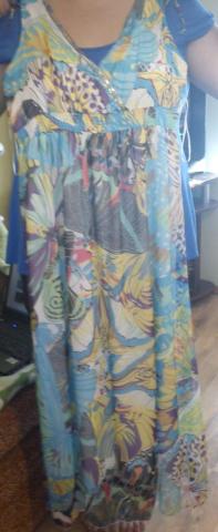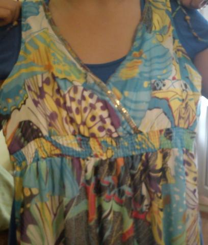 raso, kad 46 dydis, bet sakyciau, kad 42-44 :) nauja dar su etikete. svelniai melsva lengvai krentanti nuo krutines su drugeliais :)
