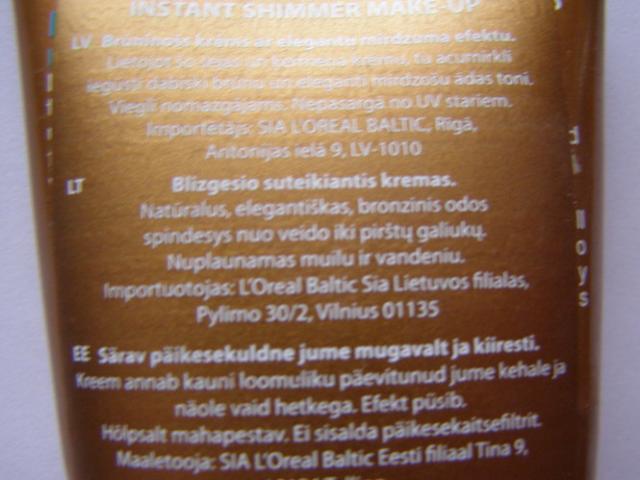 Bronzantas visam kunui, puikiai tinka einant i vakarelius. Suteikia naturaliai atrodanti idegi su blizgesiu ir lengvai nusiplauna vandeniu su muilu (paprastai vandeniu nenusiplauna, todel galima maudytis juroj pvz.) Yra apie 90 gr is 125