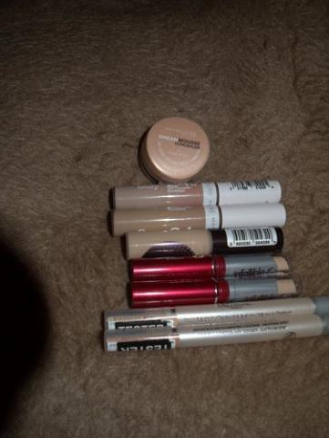 Nuo viršaus: 1. Maybelline dream mouse 04 rose beige kaina: 9 lt 2. Maybelline super stay 24h 02 light 7,5ml kaina: 9 lt 3. Maybelline super stay 24h 03 medium 7,5ml kaina: 9 lt 4. Maybelline mineral 02 natural 5ml kaina: 8 lt 5. Loreal infailible 01 vanilla kaina: 9 lt 6. Loreal infailible 04 golden beige kaina: 9 lt 7. Loreal true match D3-4-5 warm beige kaina: 15 lt 8. Loreal true match N6-9 deep beige kaina: 15 lt