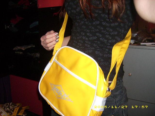 Rankena reguliuojama. Rankinė gana talpi. Parsivežta iš Vokietijos (pirkta firmos Snow&Sun parduotuvėje). Tašytės aukštis 21 cm; plotis viršuje 22 cm; apačioje 25 cm. :)