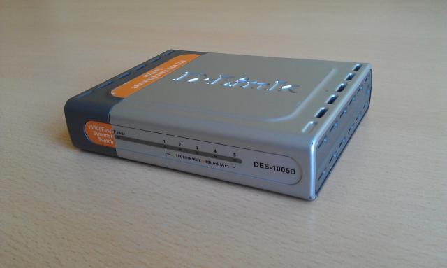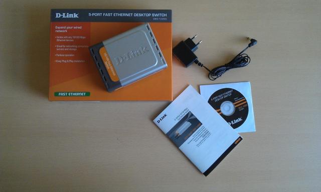 Mažai naudotas 5-portų D-Link komutatorius (switch). Pilna kompletacija (žr. pav.). Modelis: DES-1005D, 5 portai (10/100 Mbps), kiekvienas portas palaiko Full/half duplex, Full-duplex IEEE 802.3x srauto kontrolė.