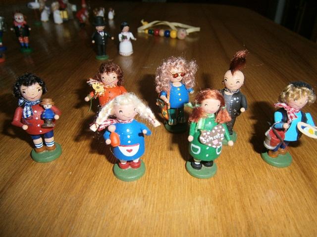 Maži mediniai žaisliukai -žmogeliukai pagal bičiulystės kompanijas. Kaina vieneto arba "kompanijos". Maksimalus žmogeliuko dydis - 5 cm. Medinukai kolekcionavimui ar pramogai. Siūlyti mainams sendaikčius.
