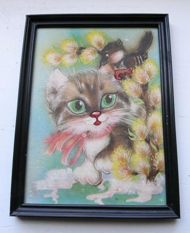 Popierinis paveiksliukas, prastos kokybės reprodukcija: M. Kacarova "Mažieji draugai!". Aptrintas, katino nosis ir paukscio kojyte apvedziotos rasikliu. Dydis 22 x 16,5 cm. Kaip paveikslas visiskai bevertis, taciau gal kas nores paivairinti vaiku kambari ar prireiks remelio (visiskai paprastas, plastikinis). Galiu parduoti uz 0,25 EUR, atiduoti uz popierini skirtuka knygai arba padovanoti prie kitu mainu.